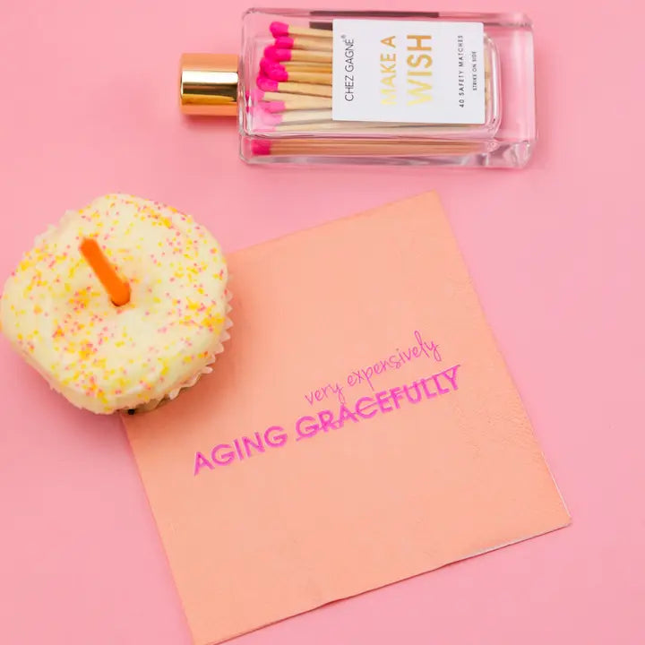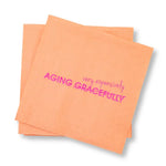 Wrinkles? Maybe. Regrets? Never. These napkins are made for the birthday girl who invests in good skincare, strong coffee, and even stronger opinions. Perfect for champagne toasts, Botox jokes, and celebrating another year of looking like a million bucks (with the receipts to prove it). Napkin Color: Apricot Printing: Pink Ink 3 Ply Paper Cocktail Napkins Set of 20 napkins