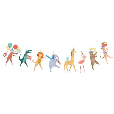 Our marching parade of animals, with eye-catching embellishments, will give your party instant wow-factor. It's the perfect decoration to add color and fun to a baby shower or a kid's birthday party. Drape on the party table, or attach to a doorway or wall. Leave it up if you want a fun decoration everyday, or pack away for party after party.