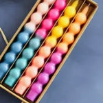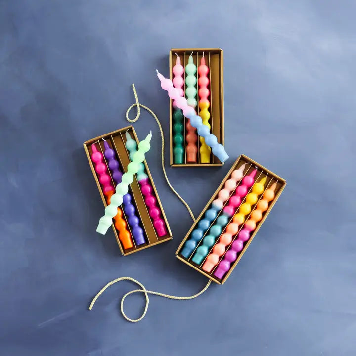 BALLerina Taper Candle, St/4, 3 Asst; Twirl into candlelit charm with our BALLerina Taper Candles! These sculptural stunners pirouette up in a playful row of rounded “ballet slipper” shapes, bringing a touch of whimsy to your tabletop in three fabulously colorful assortments. Whether you choose soft pastels, bold brights, or jewel-toned elegance, each boxed set of four is ready to dance its way into your party, dinner, or everyday celebration.