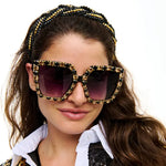 These are our gorgeous black and gold stone sunglasses - perfect for game days and team pride! Bejeweled sunglasses feature black and gold jewels around the rims.