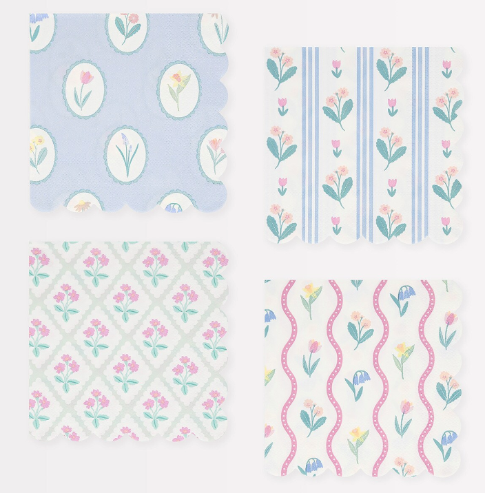 Fabulous florals are here! Vintage textiles have inspired our creative designers to craft these beautiful Bloomsbury floral designs. This set of small paper napkins are perfect for any stylish celebration, like a garden party, baby shower or bridal shower. The soft pastel colors, and on-trend cameos, will complement the rest of your tableware and they're ideal for table layering.