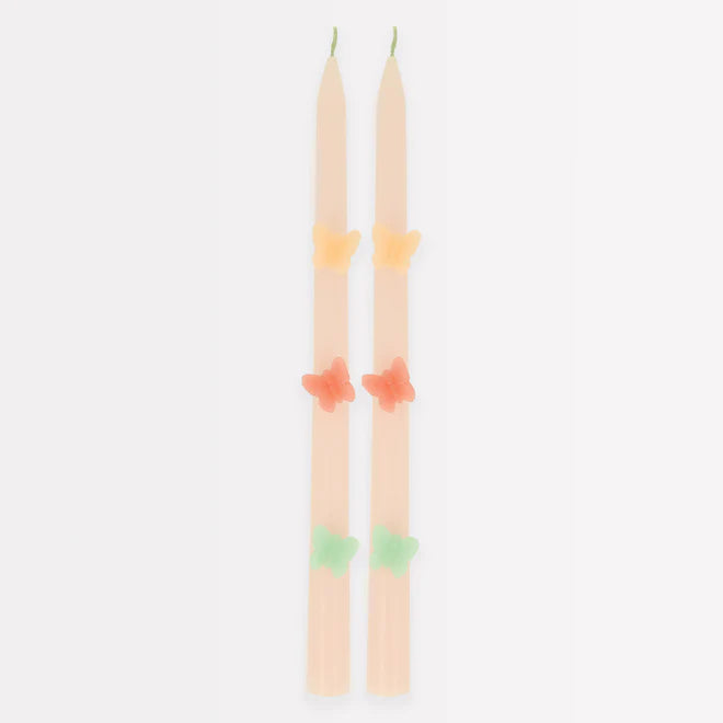 Who knew candles could be such a work of art? These elegant tall candles will look amazing on your party table or mantel. Attention to detail includes beautiful colored wax butterflies and pale pink wicks. They make a special host gift too.