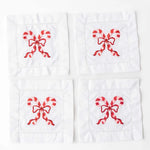 Candy Cane Embroidered Cloth Cocktail Napkins
