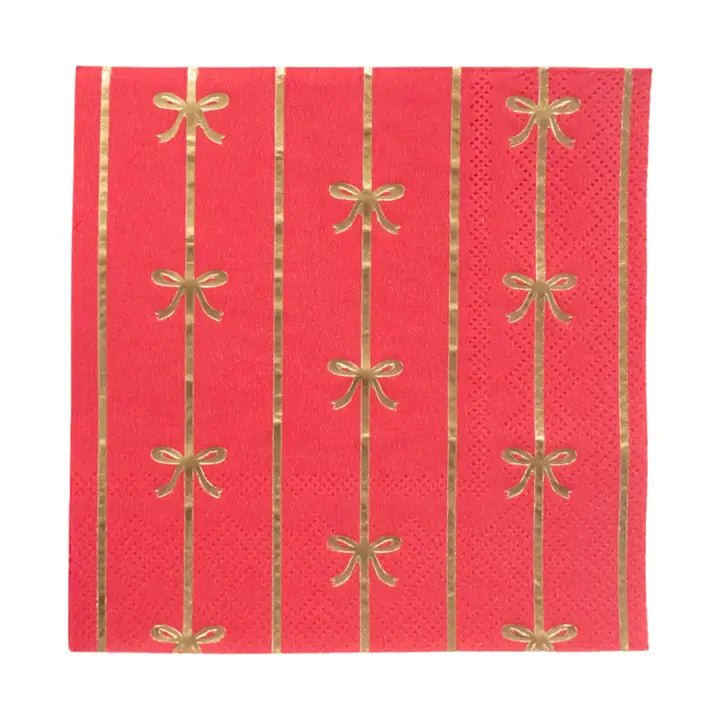 Add luxury to your event with these Cherry Red Signature Bow Small Napkins from the Bonjour Fête Signature Line. > Includes 20 paper napkins > Size: 5" folded (Small/Cocktail Size) > Premium soy-based ink