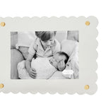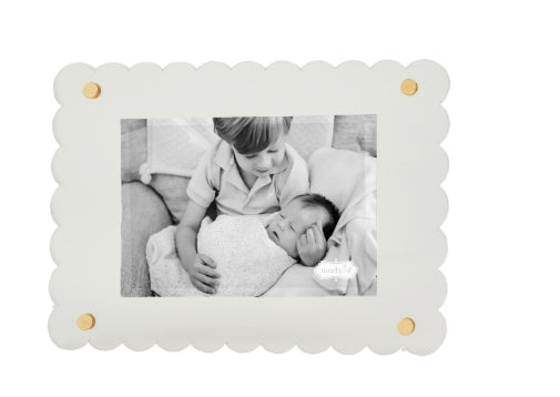 Scalloped acrylic 5" x 7" frame with brass rivet detail. Easel back.