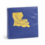 Elevate your cocktail hour with these elegant Covington, Louisiana cocktail napkins. Featuring a rich blue background and a gold foil Louisiana silhouette, they’re perfect for entertaining, gifting, or adding a refined local touch to any celebration.