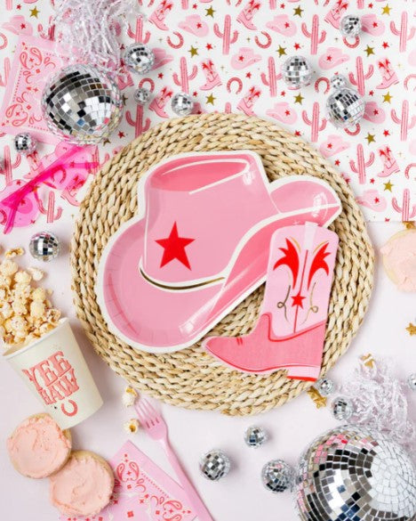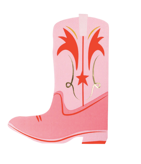 Round up the cowgirls and lasso these unique boot shaped dinner napkins! With a playful pink design, they add a fun touch to any party. Wrangle in the mess and saddle up for a good time with these festive paper napkins. Yee-haw!