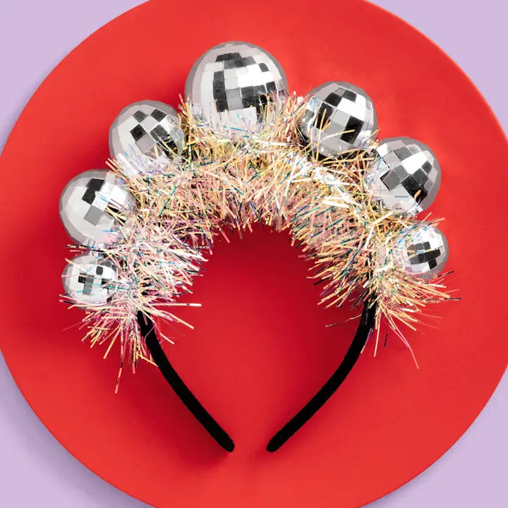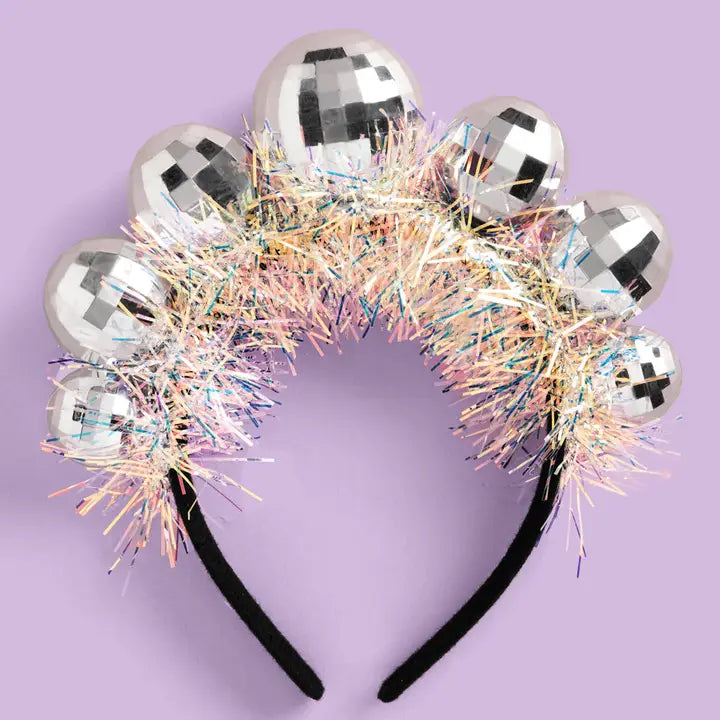 Let's boogie. Get down on it! Be the dancing disco darling for a night with our totally groovy disco ball iridescent fringe headband. The night is young and the music's high! Can you dig it? ✌️
