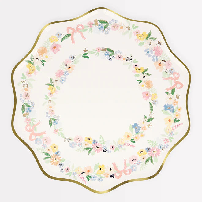 These Spring party plates offer an elegant combination of watercolor flowers and on-trend bows, in dreamy pastel colors. Perfect for garden parties, bridal showers or any celebration where you want a refined look.