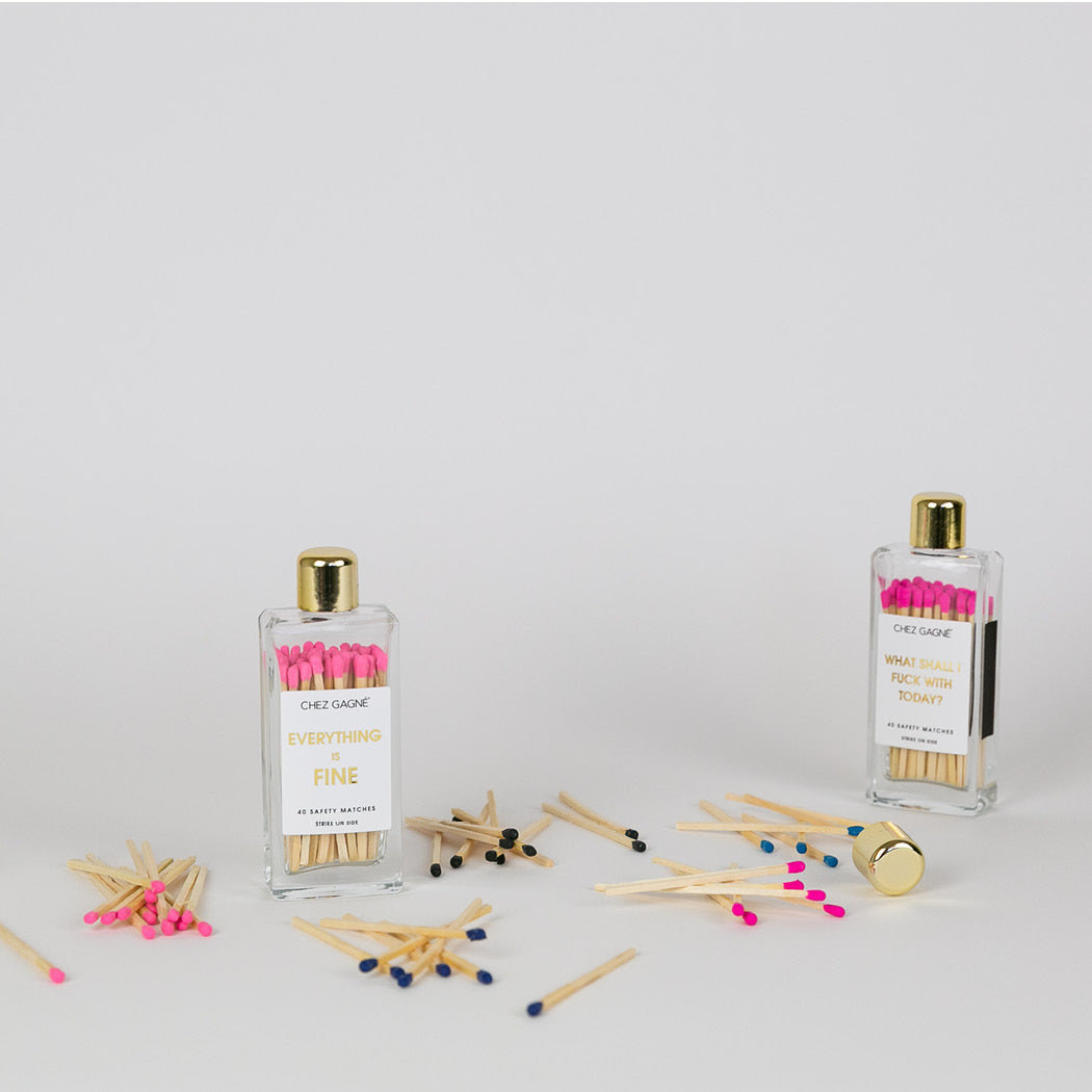 Everything is Fine - Glass Bottle of 40qty Pink Tipped Safety Matches