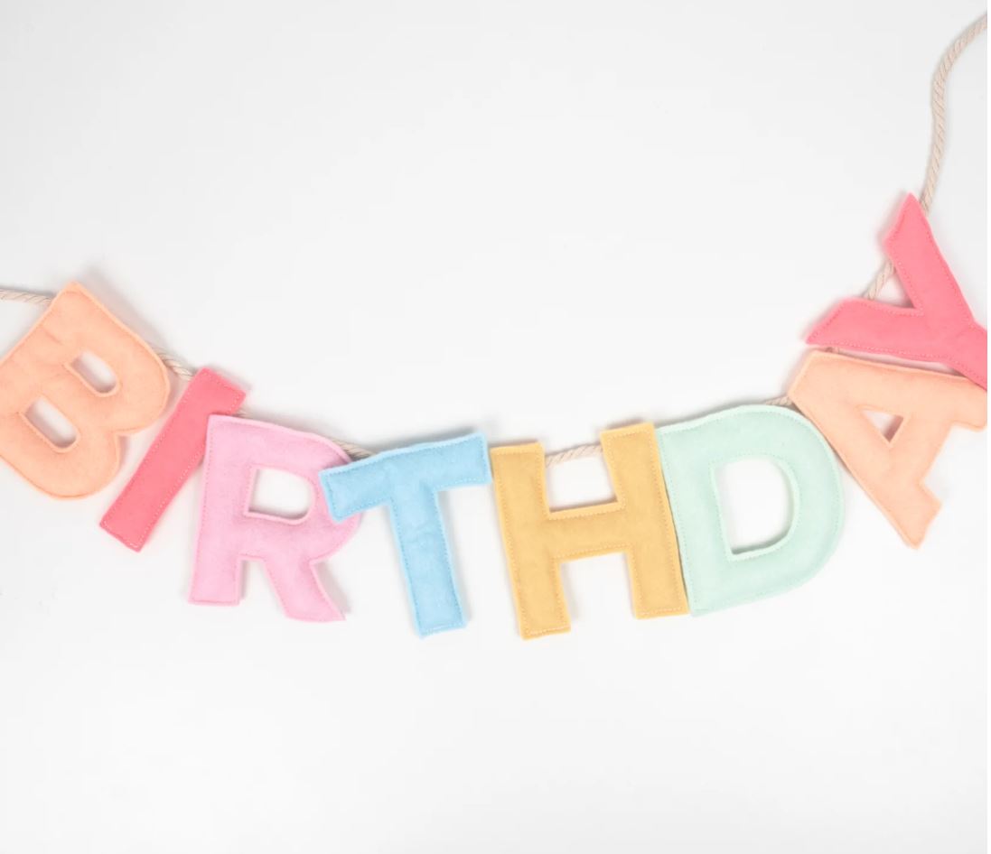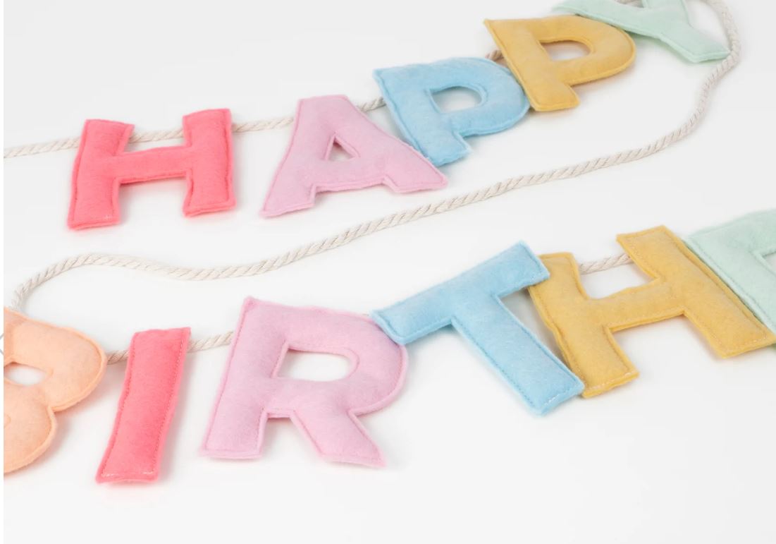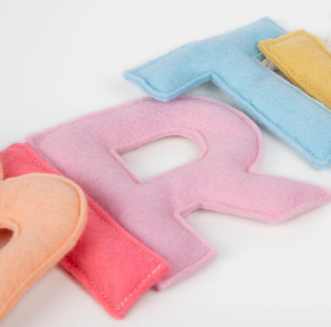 This wonderful garland is destined to be used for birthday celebrations for years to come. The letters are crafted from soft felt, with polyfill for a fabulous 3D effect.