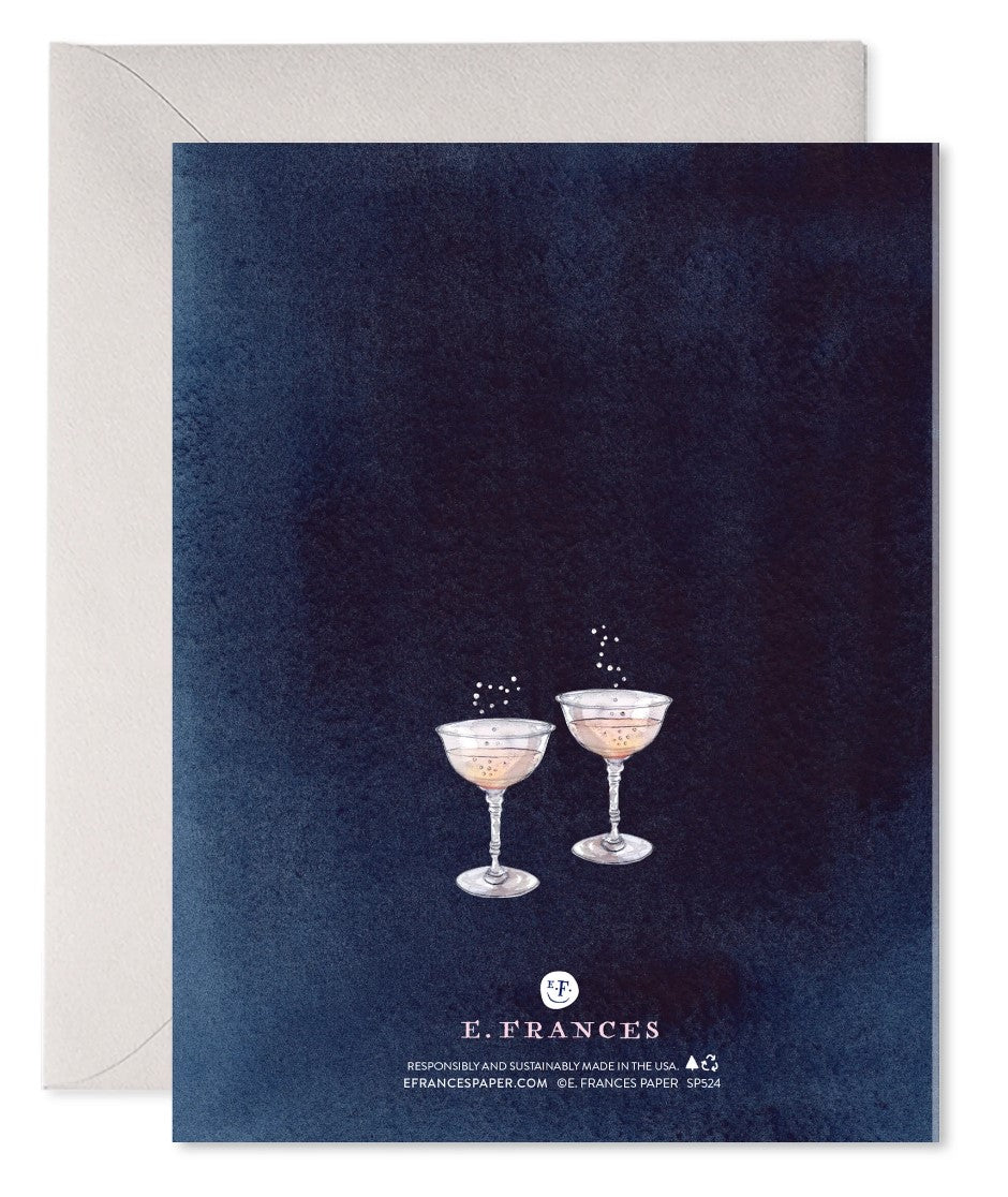 Each E. Frances card begins as an original watercolor painting, and then is printed in brilliant color on luxe, heavyweight paper and kissed with gold foil.