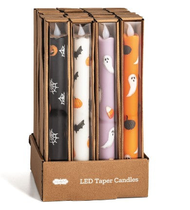 Faux flame LED candle with thin wax coating. Requires 2 AAA batteries, not included. Comes gift boxed in kraft displayer.