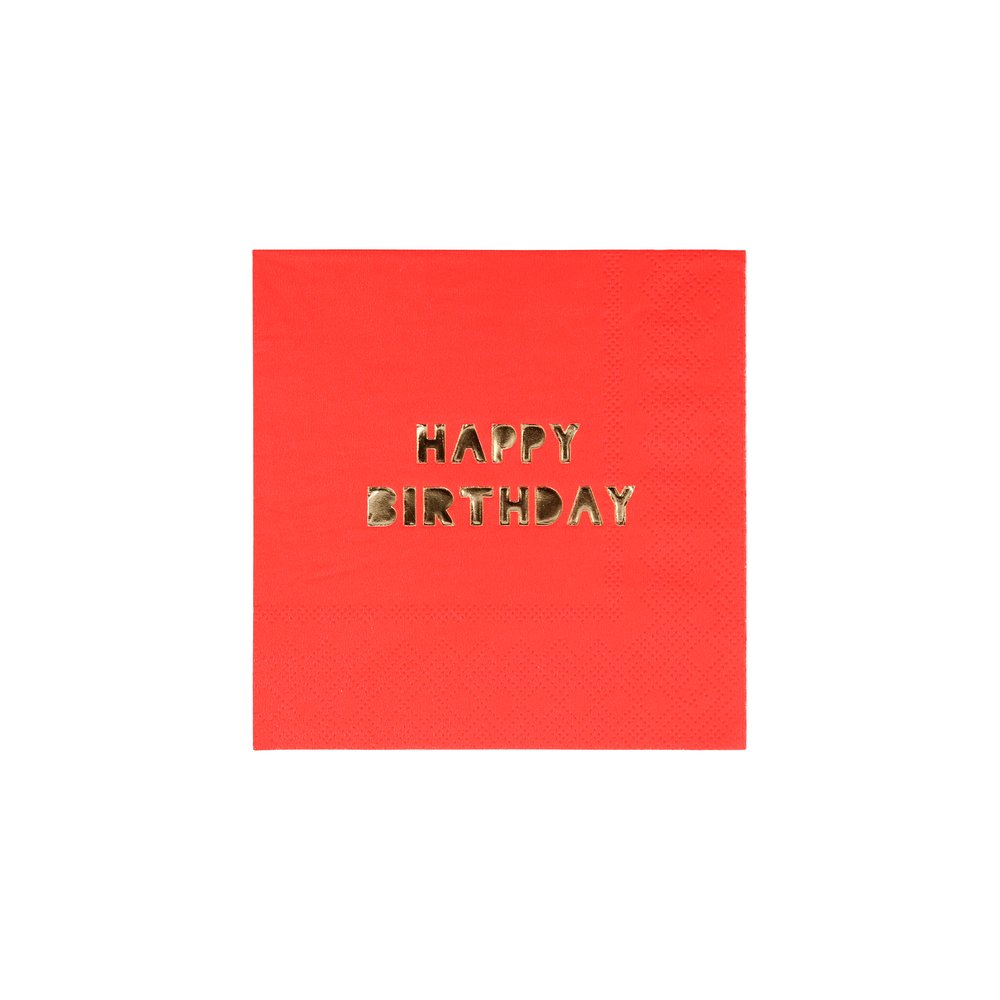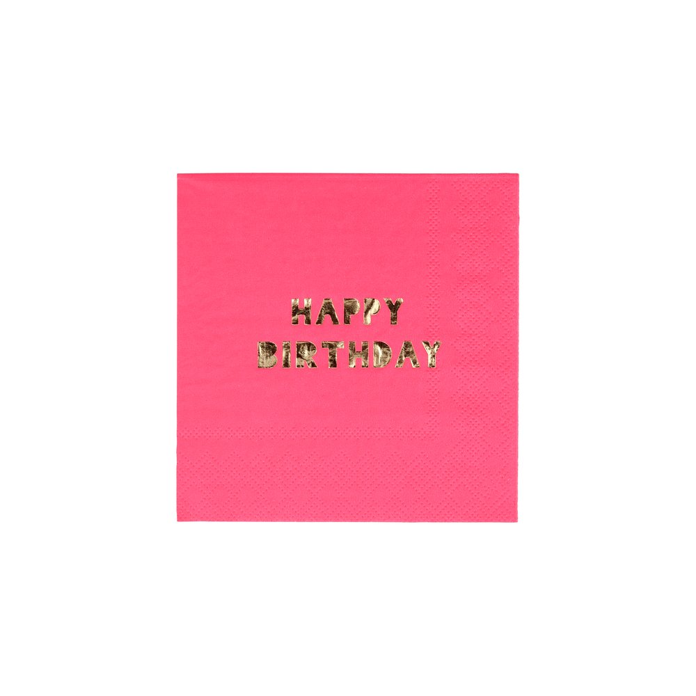 What better way to celebrate another excellent year than with a big splash of bold, beautiful color? These paper napkins are the perfect decoration for any party table and are part of our Happy Birthday range. With sixteen napkins in eight bright colors, each with a shiny gold foil Happy Birthday message, these are sure to add a little brilliance to your celebration!