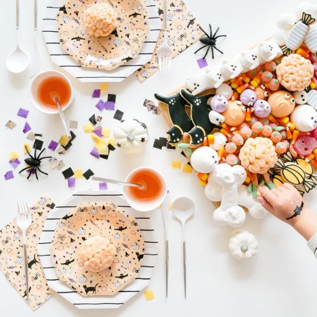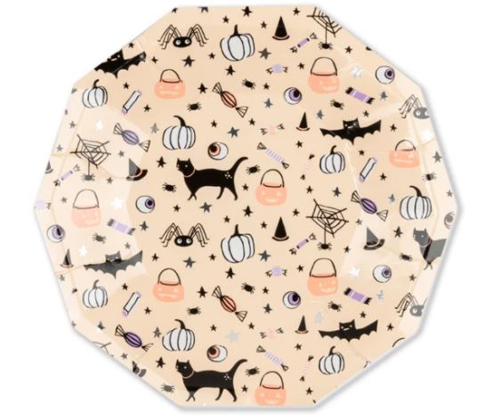All the tricks and treats! Featuring silver foil elements, these Halloween plates have put a spell on us!