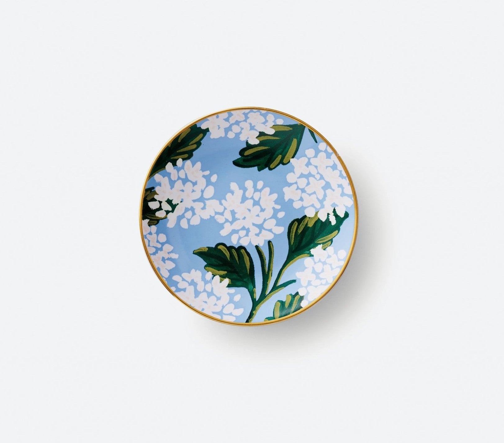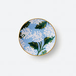Keep this ring dish by your desk, the sink, or on your nightstand, and keep all your small, special things safe. The porcelain dish features our illustrated Garden Party florals and a metallic gold rim for extra shine.