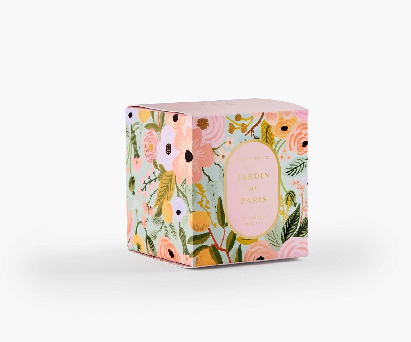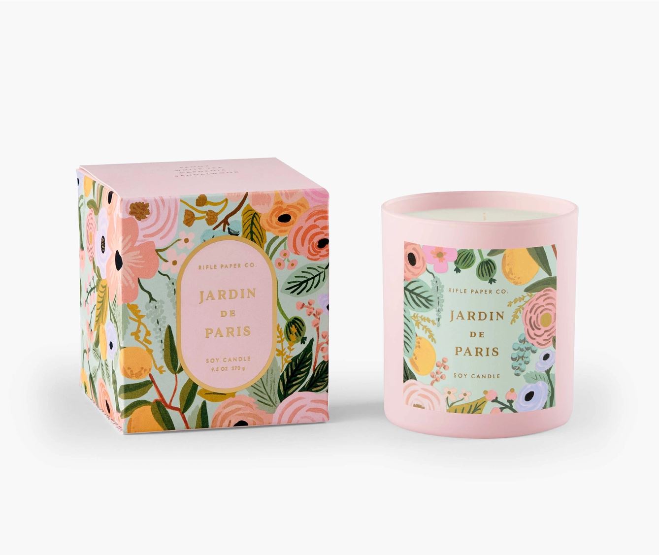 Layered and floral, Jardin de Paris plays homage to blooming French gardens and the iconic elements of Parisian style: classic and feminine. The 9.5oz soy wax candle comes in a painted glass vessel and is packaged in a decorative gift box with gold foil accents.