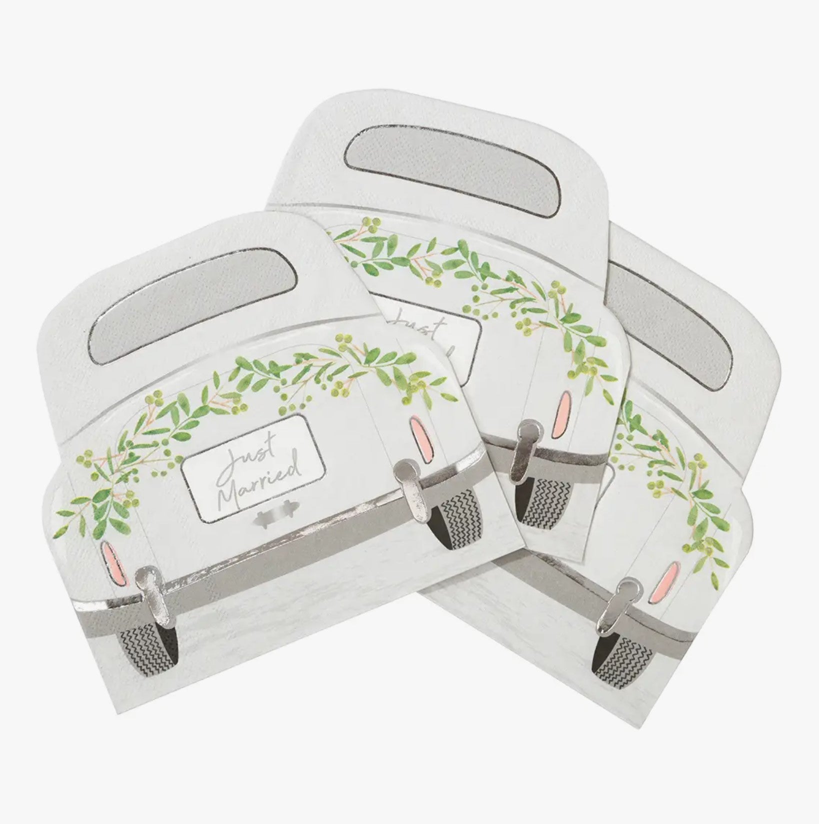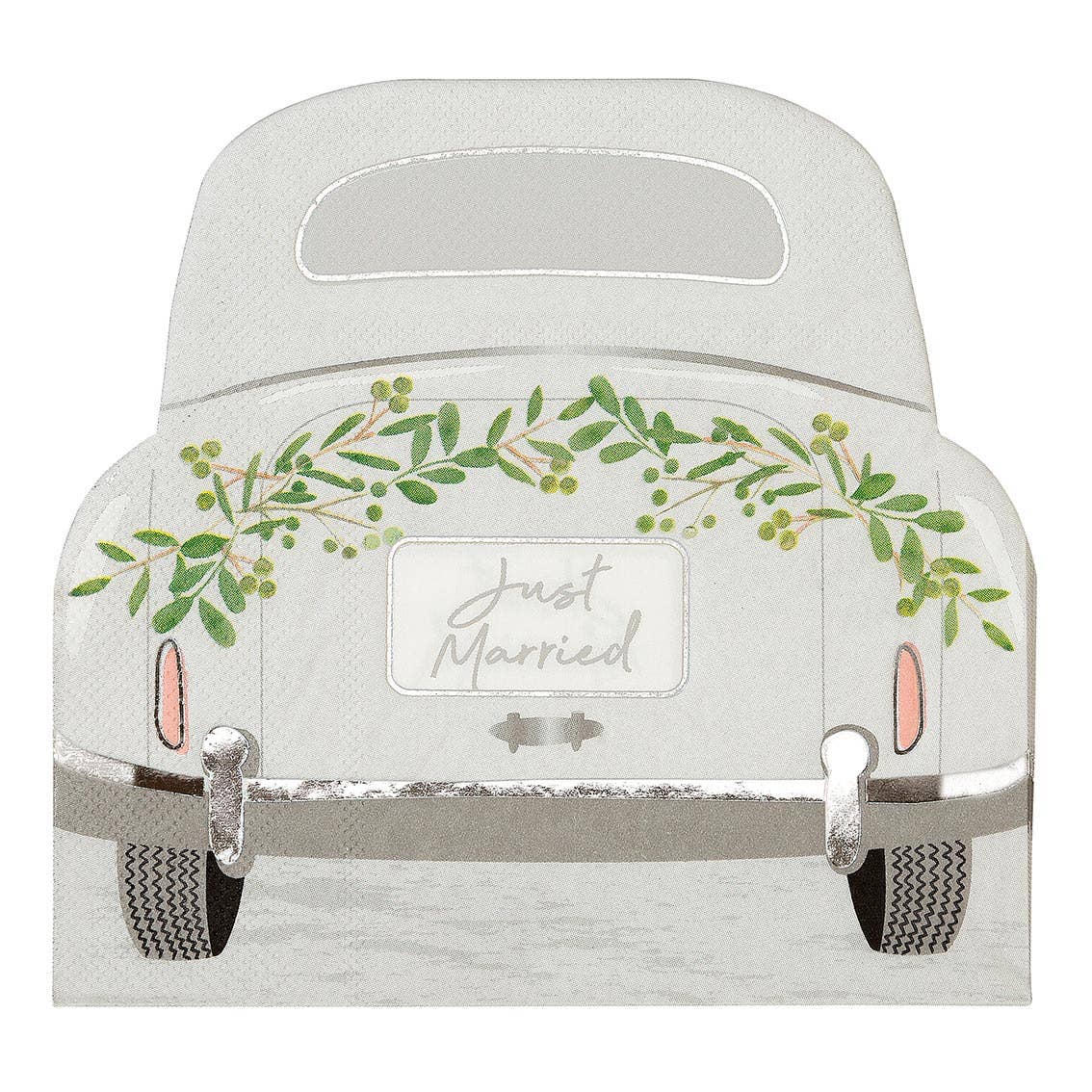 Celebrate the happy couple with these car shaped wedding napkins. Perfect for serving wedding cake, or simply elevating a place setting, this napkin features a shiny foil finish on only one side to be kinder to the planet.