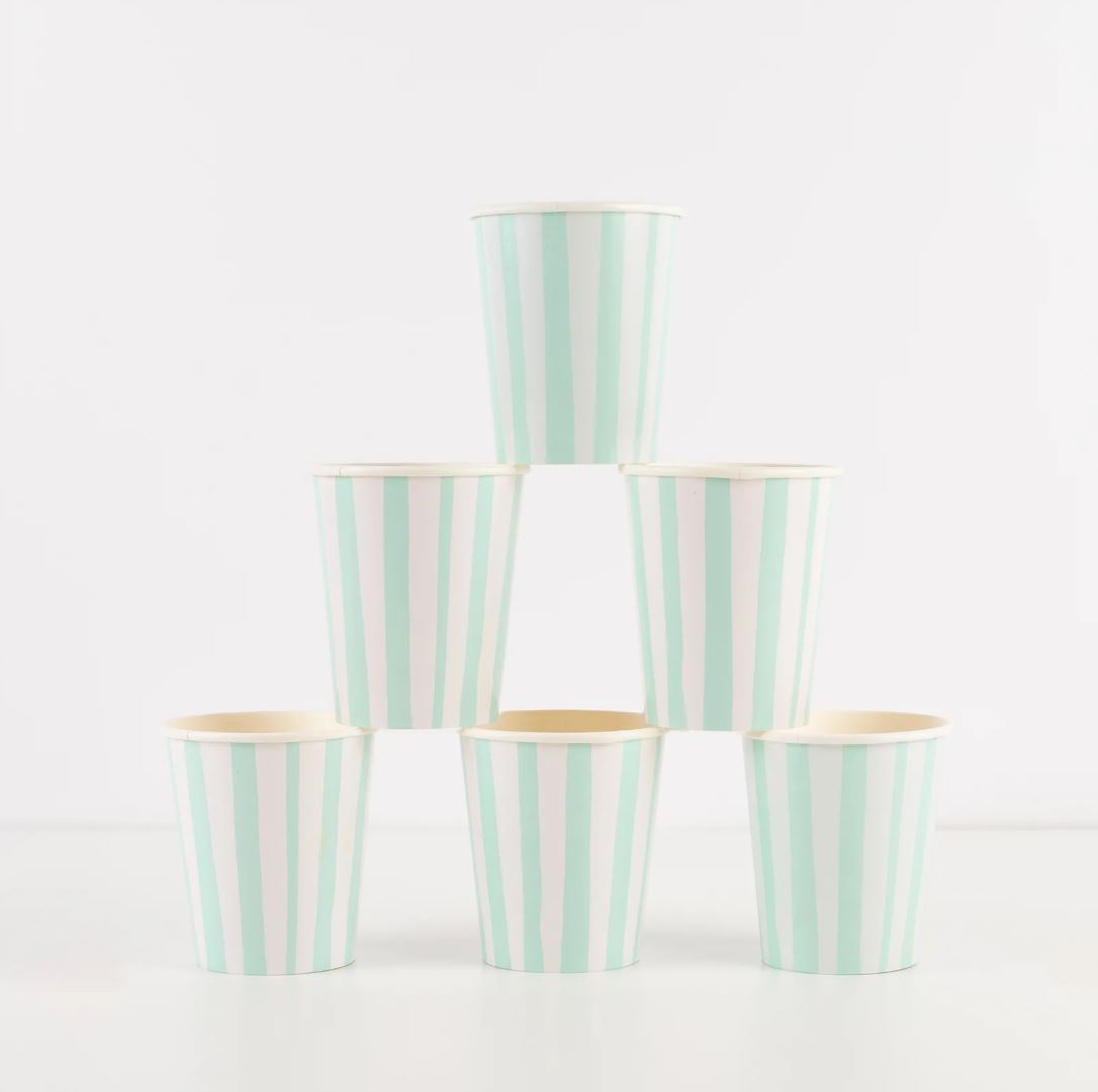 These mint and white striped cups will look fabulous on your party table. They are a seriously stylish way to serve special drinks in too.