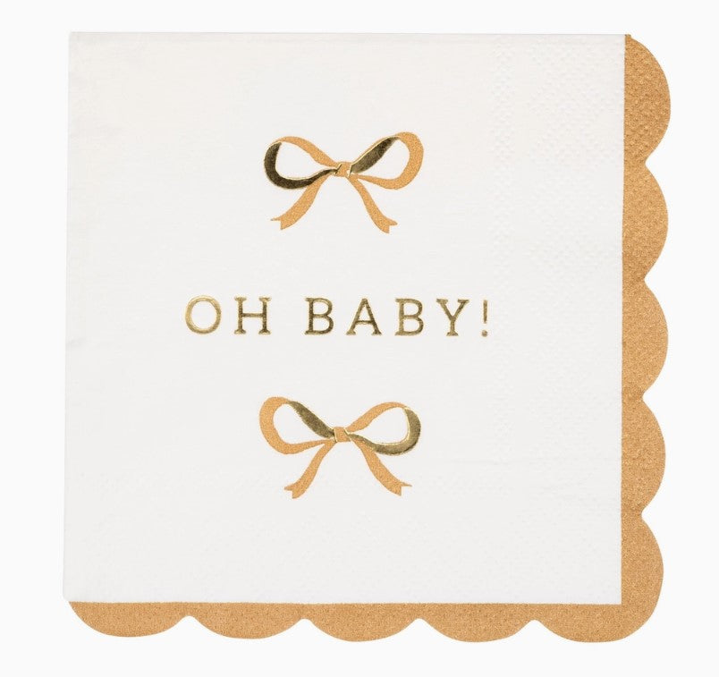 Celebrate your baby shower with style using our Oh Baby Gold and Tan Cocktail Napkins. These gender-neutral napkins feature elegant gold and tan tones, adding a touch of sophistication to your party décor.