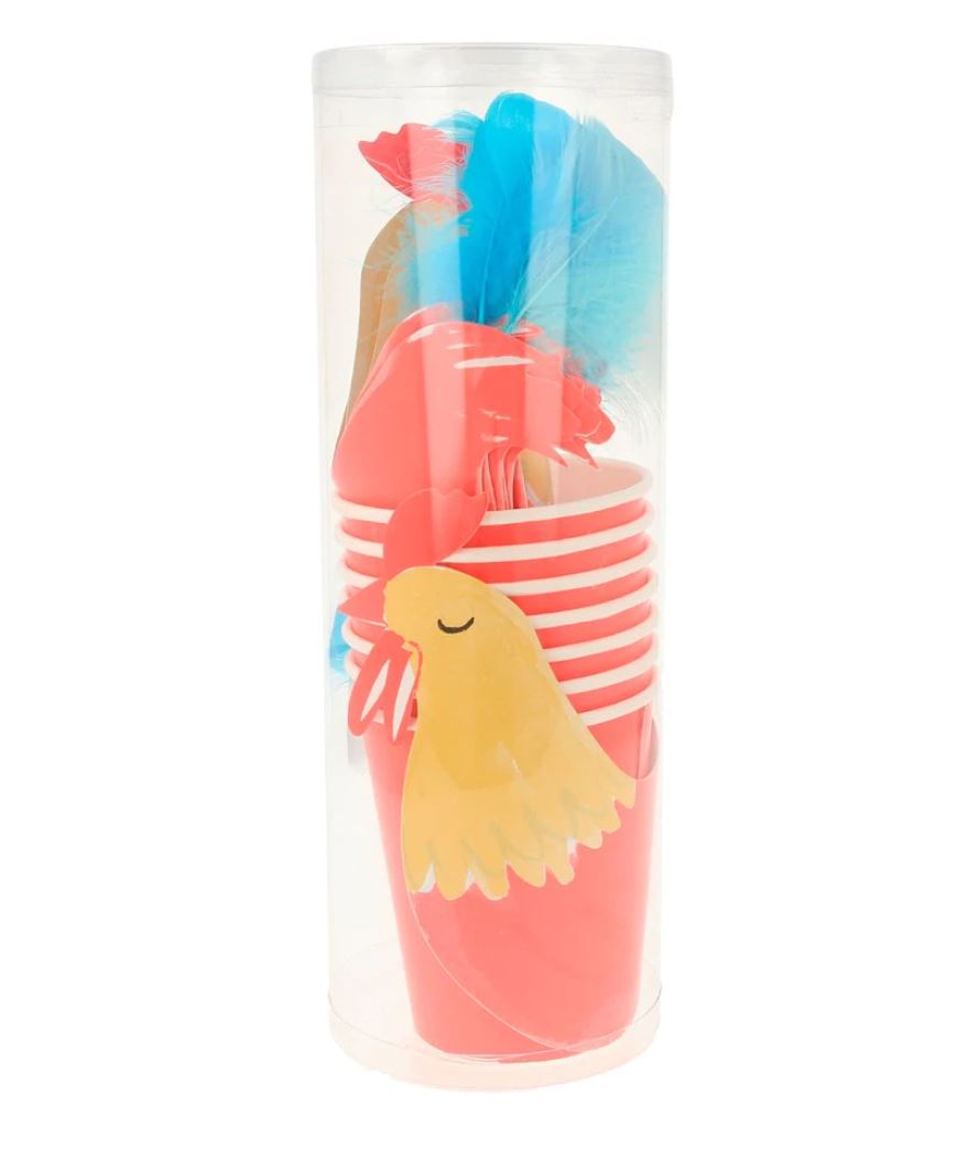 Cock-a-doodle-doo, these On the Farm rooster party cups will look magnificent at a farmyard-themed party! Beautifully illustrated and embellished with a bright blue feather, they will be sure to delight your party guests.