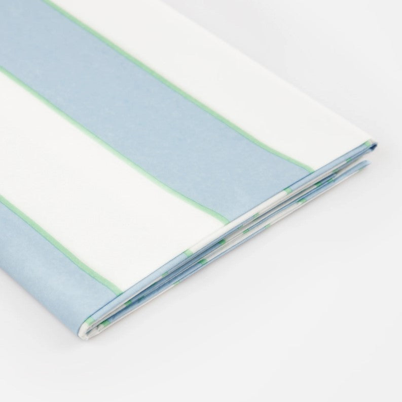 Stripes are timeless and make a statement! Make your party table look instantly fresh with our blue stripe tablecloth. It's ideal for a baby shower or any party where you want a stunning blue color theme.
