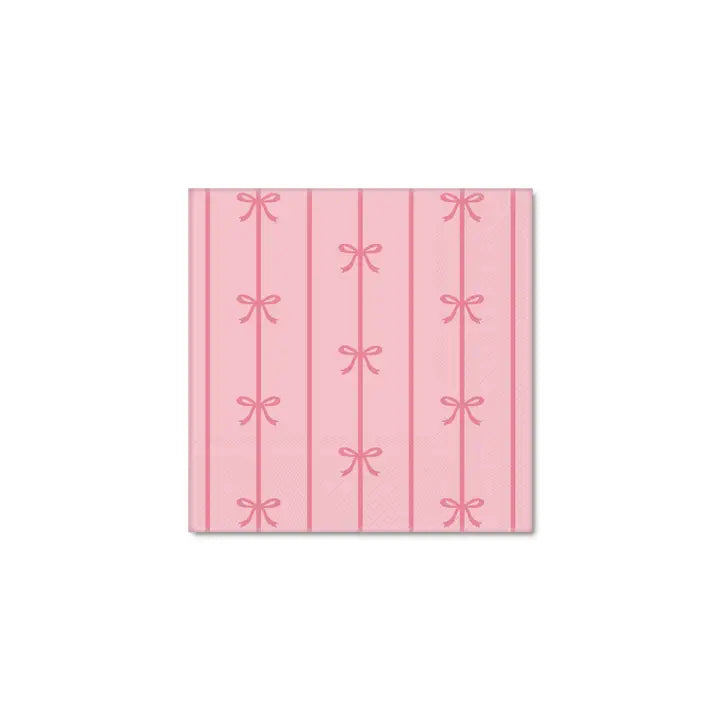 Petal Pink Signature Bow Small Napkins from the Bonjour Fête Signature Line. > Includes 20 paper napkins > Size: 5" folded