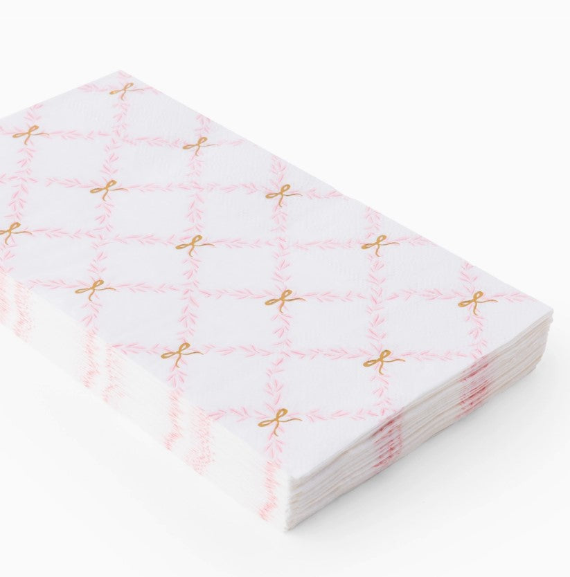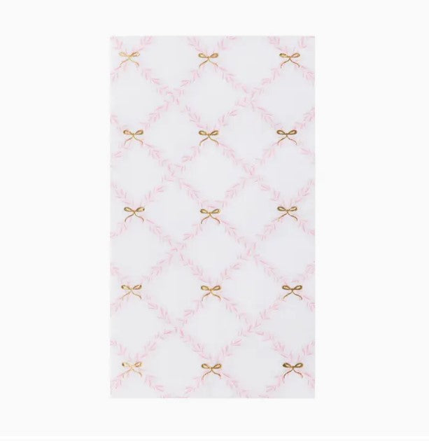 Delight your guests with our Pink Trellis Guest Towels, featuring a timeless blue design and elegant bow details. Perfect for Mother’s Day and tea parties, these premium paper towels add sophistication to any table setting while ensuring convenience.