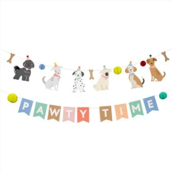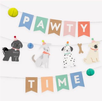 It's pawty time! Kids (and adults) who love puppies will simply adore this garland featuring furry friends with embellished tails and pompom hats, bones and honeycomb balls. Drape it on the party table or on a wall for a delightful decoration. It's perfect for a dog lover's birthday party or a party for your family pet.