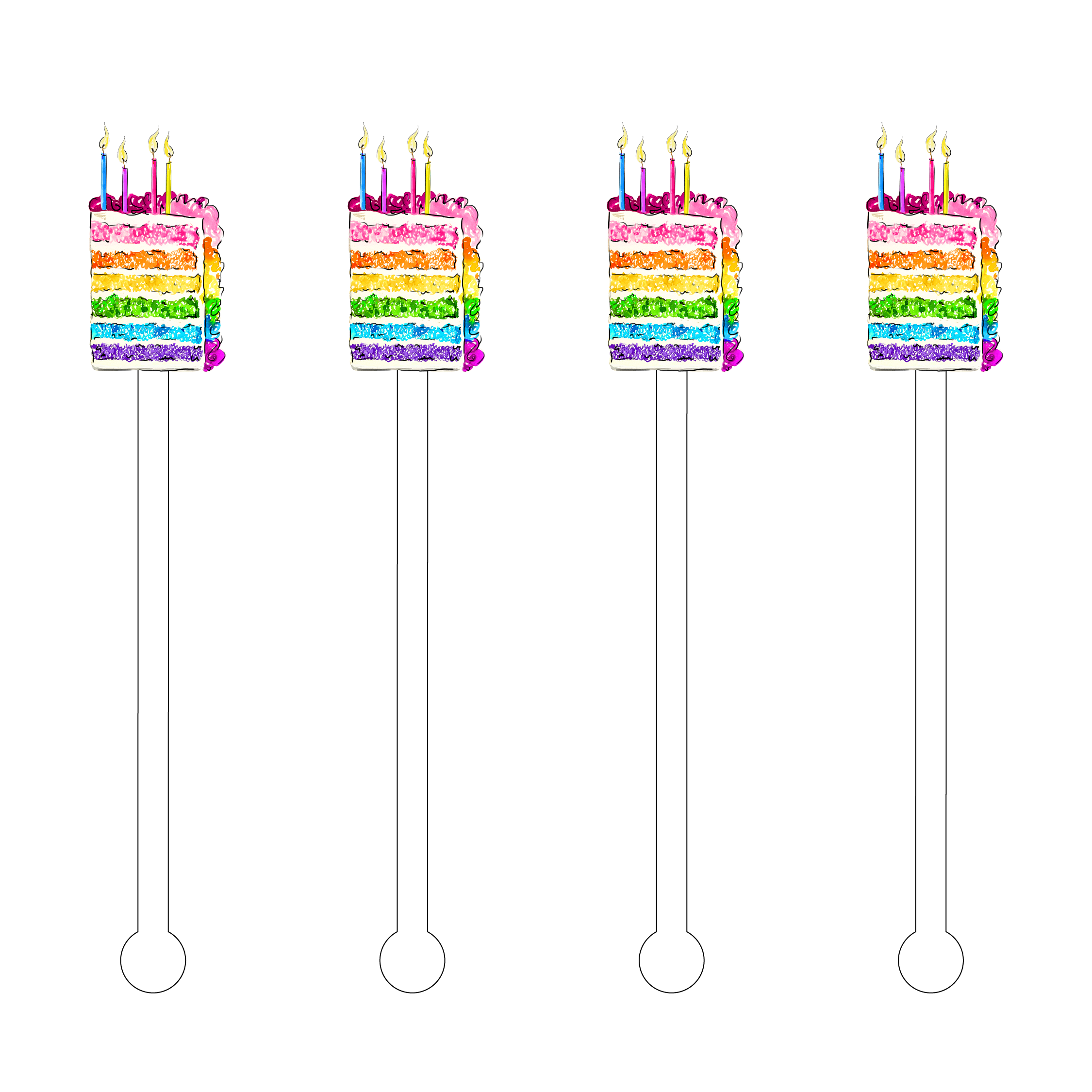 Rainbow Slice of Birthday Cake Acrylic Stir Stick