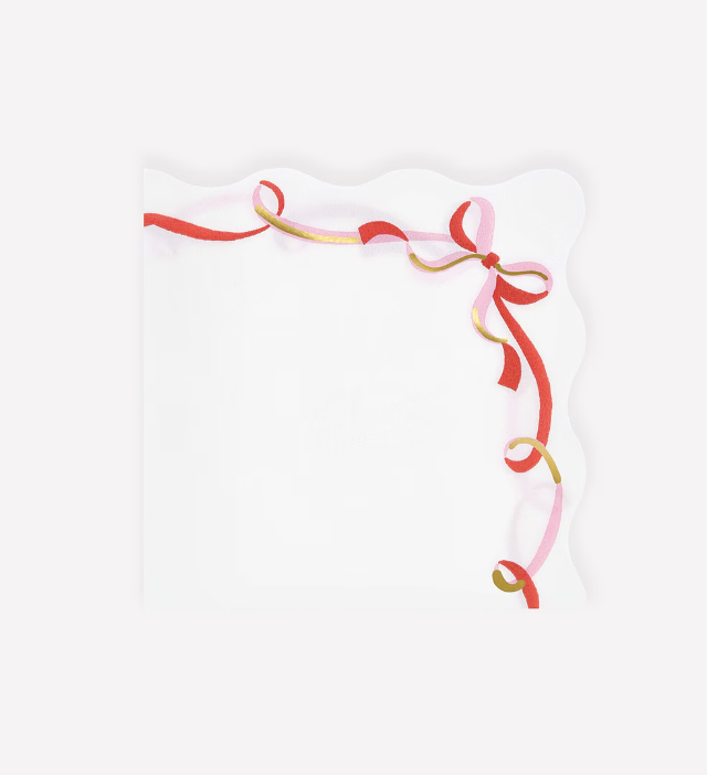 Pink and red ribbon bows are the perfect tableware design for an effortlessly chic Christmas table. The rich warm red brings classic festive charm, the soft pink and shiny gold foil accents give a contemporary twist, and the bow design adds fashionable flair. These small paper Christmas napkins, with wonderful wavy edges, are guaranteed to make your table look vibrant and stylish.