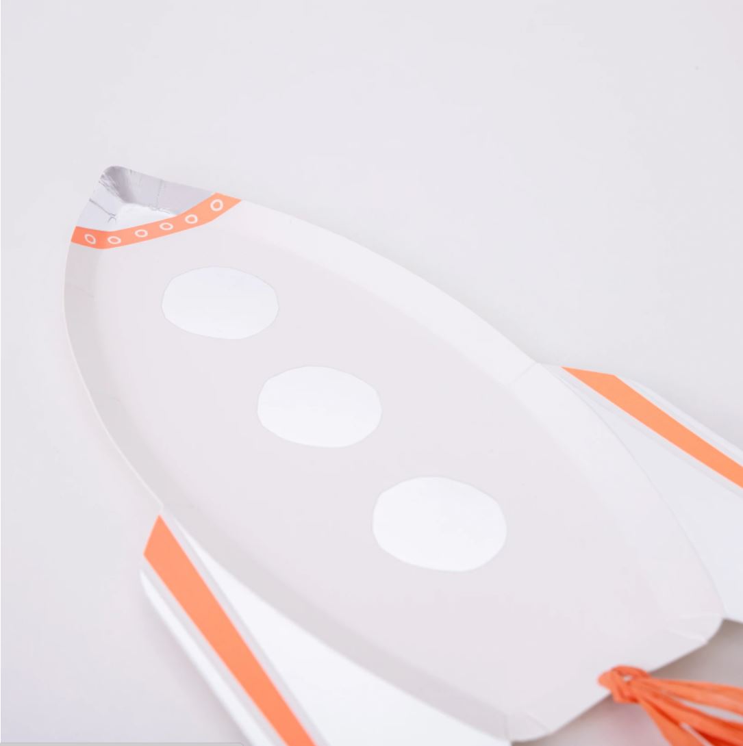 These fabulous rocket plates are an amazing way to decorate a space party table to delight little astronauts. They are crafted from high quality card, so are perfect to heap with space treats too.