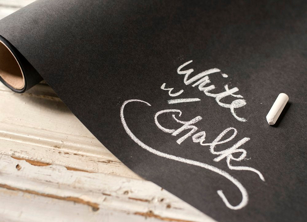 This black chalkboard table runner is perfect for an easy, fuss-free table setting. Roll across table and cut to desired length. Use chalk to personalize. Also can be used as wrapping paper.