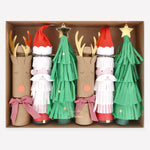 These Christmas crackers deliver quadruple the joy - eye-catching designs, a satisfying snap, fun to hold and unwrap and an exciting family game! Decorated with playful details, like tissue paper fringing and stylish ribbons, they're made to stand out on your festive table. Inside each you'll find a joke and a reindeer antler headband. Clip on the picture cards, provided inside the box, to play a lively round of 'Guess who?'. The perfect way to bring laughter and holiday cheer to everyone at the table.