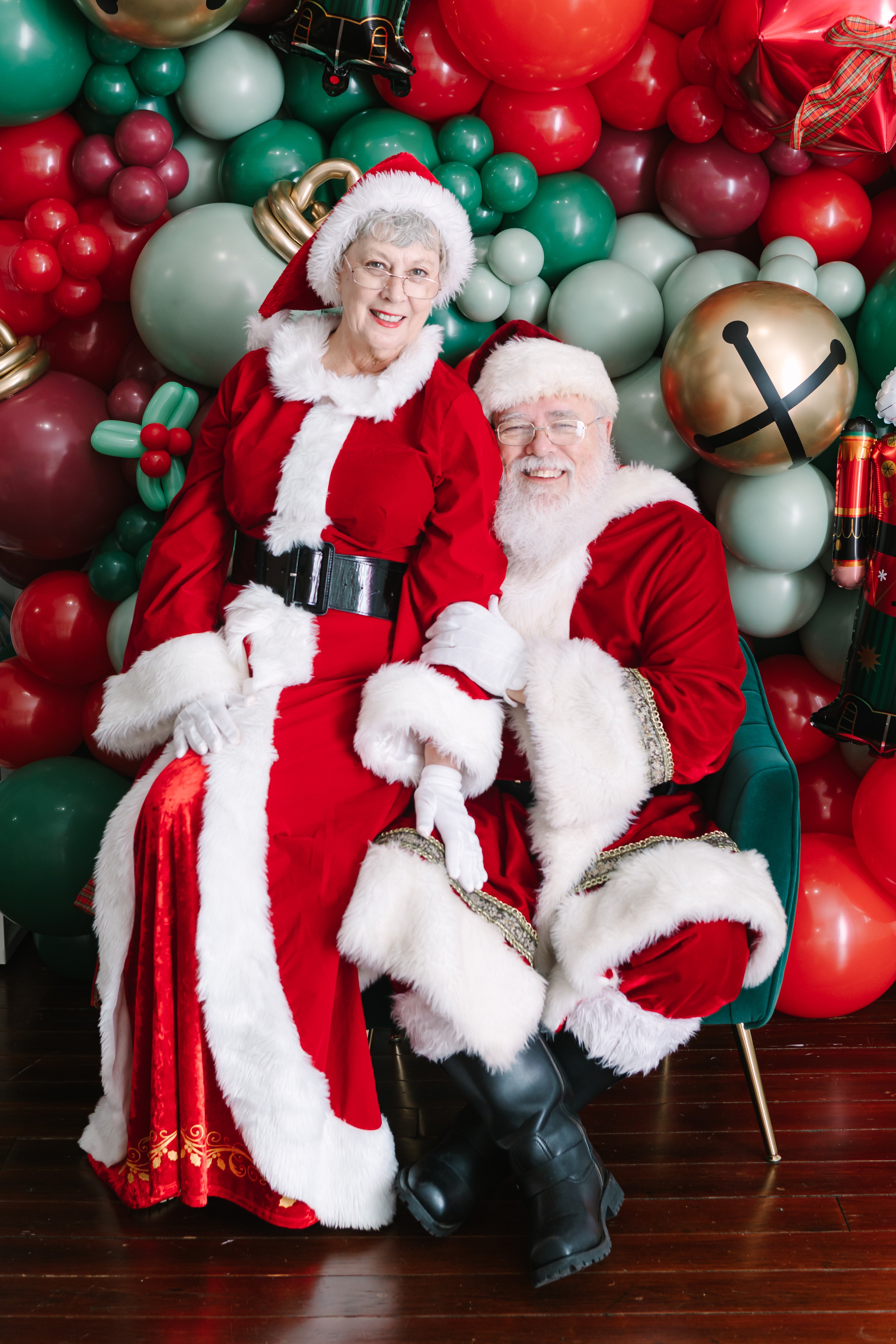 *Please note: This is not our set-up for 2025! The photos here are from last year's set-up. It'll be a similar look with the same Santa & Mrs. Claus, as well as balloons for a fun and festive backdrop!