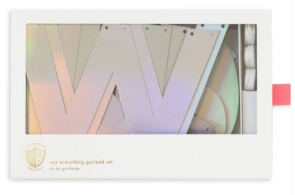 Say all the things! This foil garland set includes a total of 95 letters, numbers, and characters to celebrate any and every occasion. We crafted it with sturdy paperboard so that it can be used time and time again!