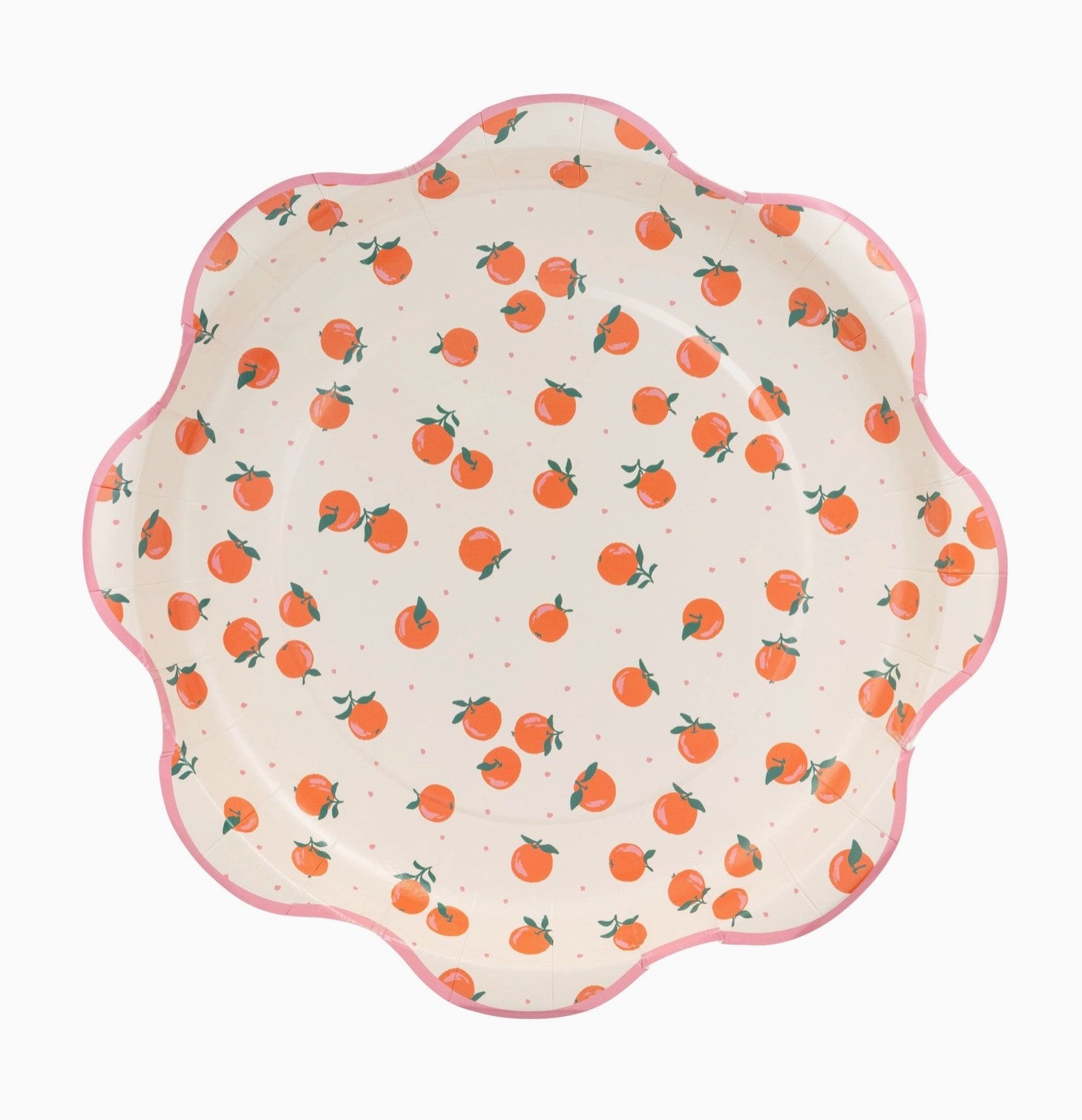Elevate your party table with our Oranges 10-inch Plate, featuring a lively scattered oranges design. Perfect for serving appetizers or snacks, its vibrant pattern adds a refreshing, festive touch that brightens any celebration. Durable and stylish, this plate is sure to keep the fun rolling at your next gathering.