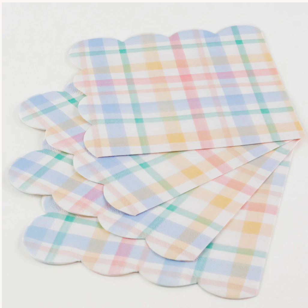 Add a touch of nostalgia to your party napkins with these vintage-inspired plaid designs. They are perfect for any celebration where you want soft muted shades - ideal for baby showers and birthday parties.
