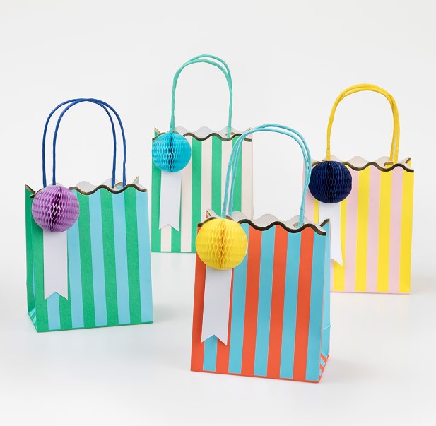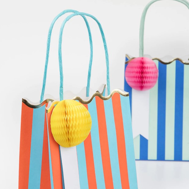 Stripes make a statement! This timeless pattern, teamed with gift tags embellished with fun honeycomb balls, gives you party bags your guests will adore. They're perfect for any birthday party theme.