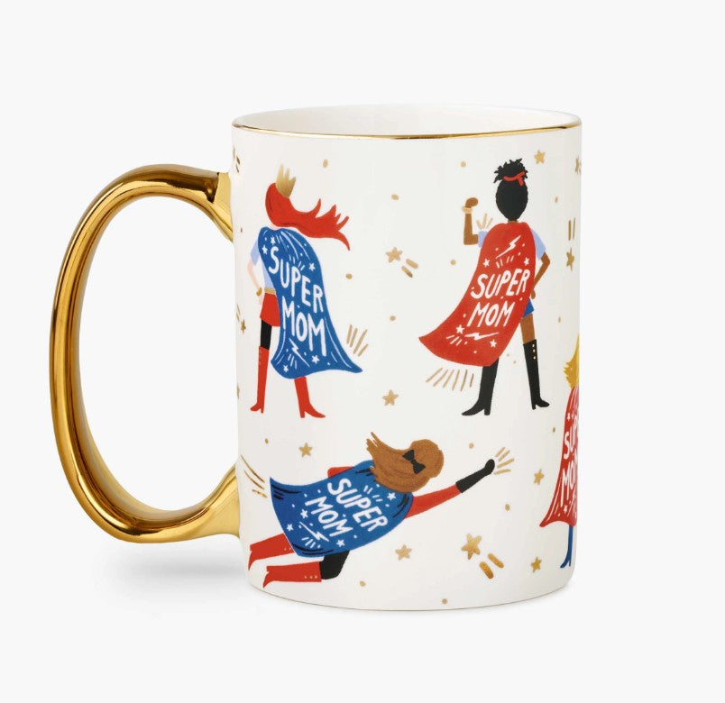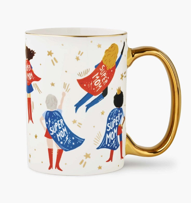 Not all heroes wear capes. Show Mom she’s super with our mug featuring soaring Super Moms and gold accents.