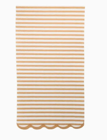Elevate your baby shower or any celebration with this tan striped dinner napkin. Its neutral tones blend effortlessly with various party themes, adding a subtle touch of elegance and warmth.