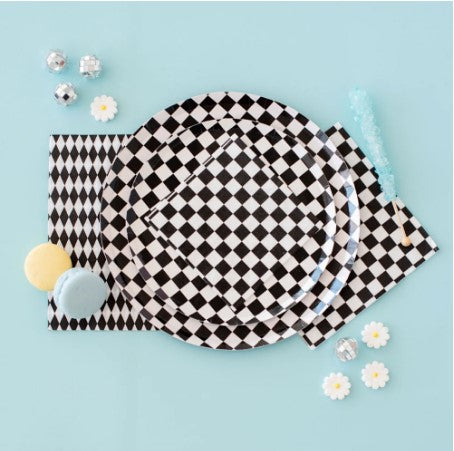 Inspired by the classic skater shoe, our Check It collection is sure to make your party checklist! The two-tone plates and checkered print napkins are perfect for mixing and matching with your favorite party pieces or used as stand-alone items.