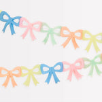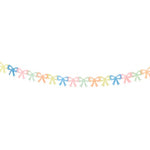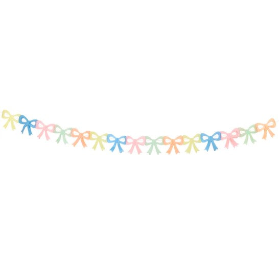 - Includes 3 garlands each with 15 tissue paper bows in 5 colors - pale yellow, blue, pink, mint and peach