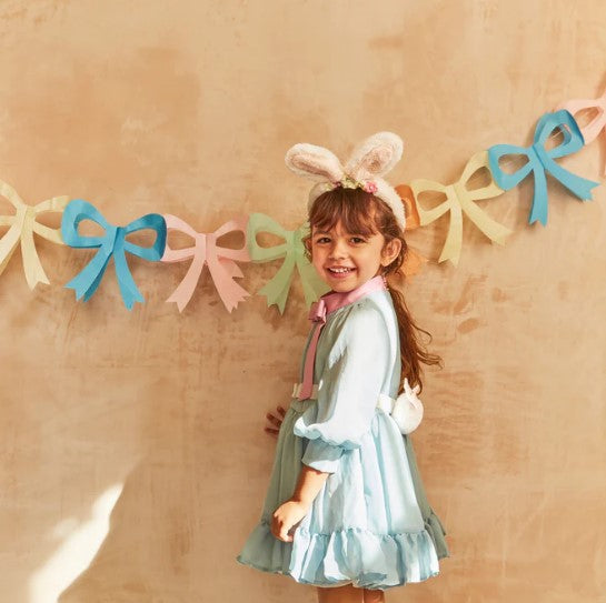 The soft color palette of these on-trend bows is perfect for Easter or any special celebration where you want a touch of springtime beauty. Hang the garland on the party table, on the wall, in doorways or in the porch. The concertina design is super easy to open, hang up, and pack away for use year after year.