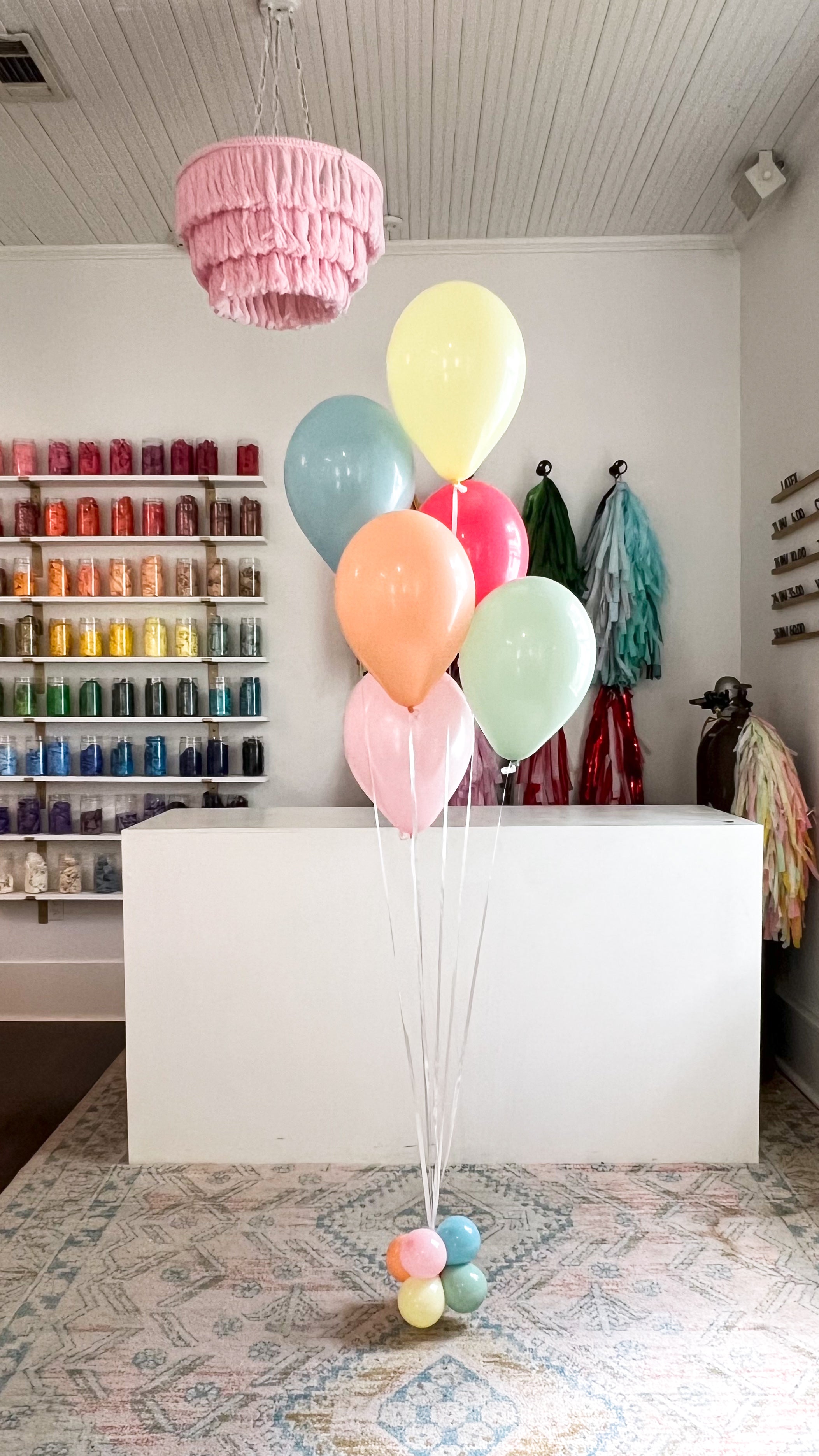 Choose your balloon colors. At checkout, select the date you'd like to pick up your helium balloon bouquet. You'll get an email when it's ready to come pick up from our storefront at 218 Lee Lane, Covington, LA.
