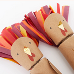 - The turkeys' tails are made from strips of red, purple, yellow and orange tissue paper