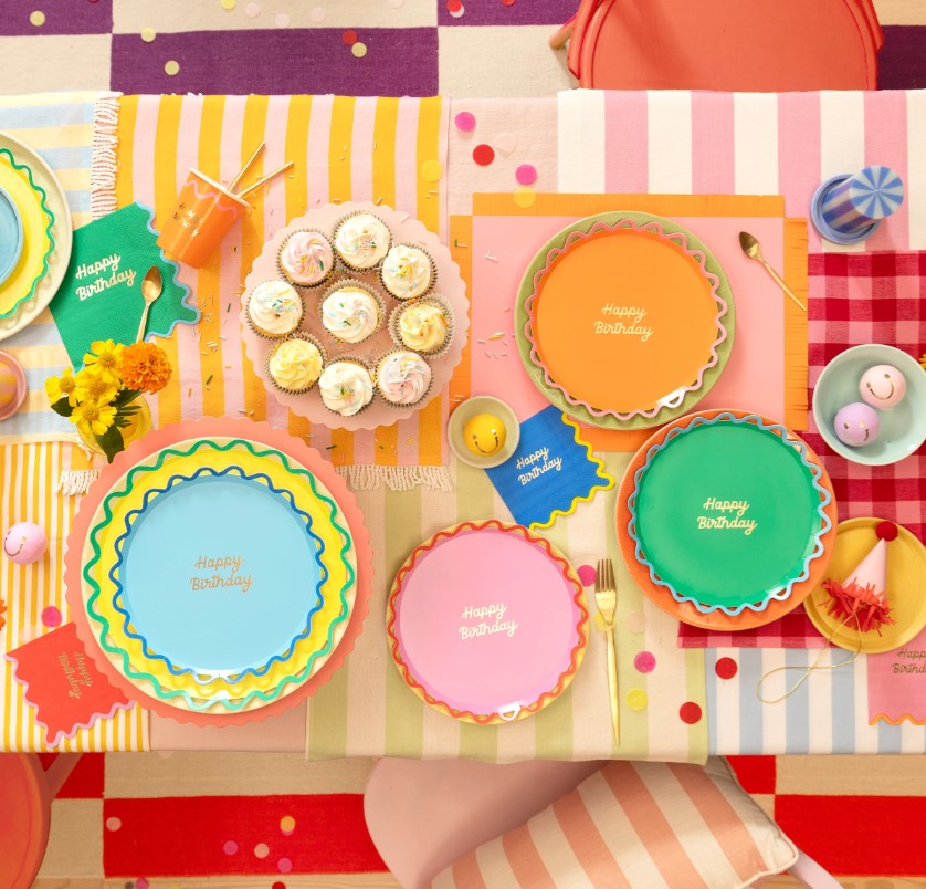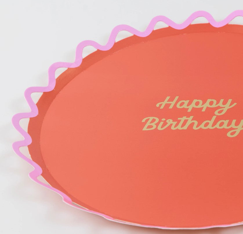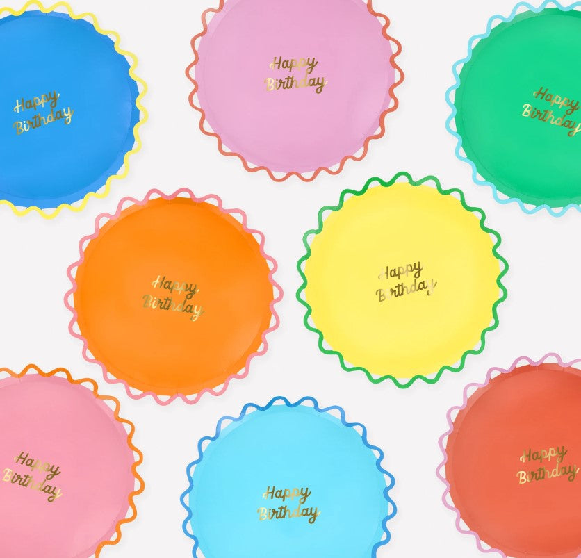Bring a playful twist to your party with these delightful plates. With a bright, cheerful palette, an on-trend ricrac wiggle border, and 'Happy Birthday' in shiny gold foil, these side plates will bring instant vibrancy and style to any birthday table. Mix and match with the rest of your tableware for a rainbow of fun that's sure to delight every guest.