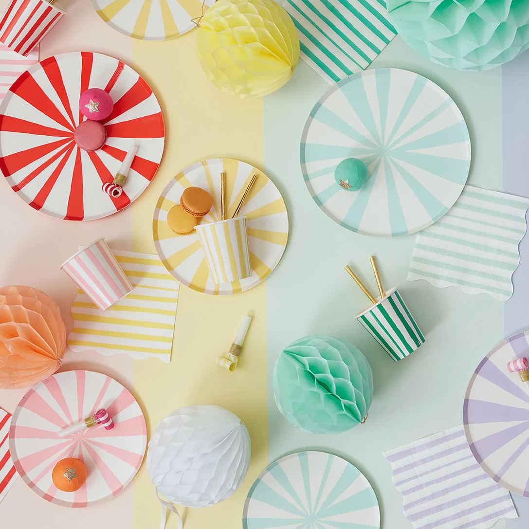 Add a ray of sunshine to your party table with these vibrant yellow and white striped plates. Yellow is a fabulous fun color and is perfect for all celebrations.